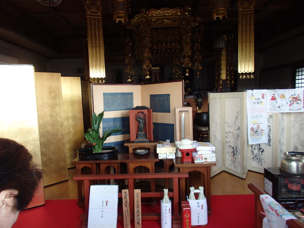 存在貞上人(後の芝増上寺第十世法主)、本尊は阿弥陀如来です。境内の正面には呑龍堂(本堂)があり、呑龍上人(蓮磬寺の住職で後の芝増上寺十二世法主存応上人の直弟子)が祀られています。呑龍堂前面にはおびんずるさまが鎮座しており、触ると病気が治るまた頭が良くなる仏として人気があります。そのほか鐘楼、水琴窟があります。川越七福神の第五番福禄寿神がおられる寺院でもあります。福禄寿神中国出身の神様で、招福と立身出世の神様です。境内も広く、呑龍堂の大きさと立派さに目を奪われます。唐破風屋根下の彫刻は見事なものです。参拝客は妙善寺の人出に比べて圧倒的に少なく七福神巡りの方は何処へ行かれたのでしょうか。福禄寿神にはほとんど並ばず拝むことができました