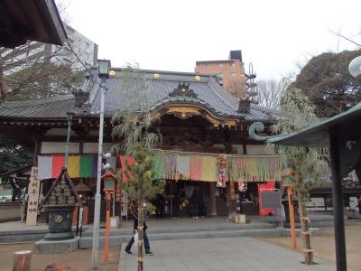 西武線飯能駅から20分強で諏訪八幡神社に到着しました。神社は1516年創建の古い神社です。他の地味な社殿とは違い、大きくはないですが鮮やかな朱塗りの拝殿が印象的です。境内には境内社の飯能恵比寿神社が建っており、七福神の一つ恵比寿天が祀られています。飯能恵比寿神社の旗が多く立っておりどちらが主だかわからないような状態です