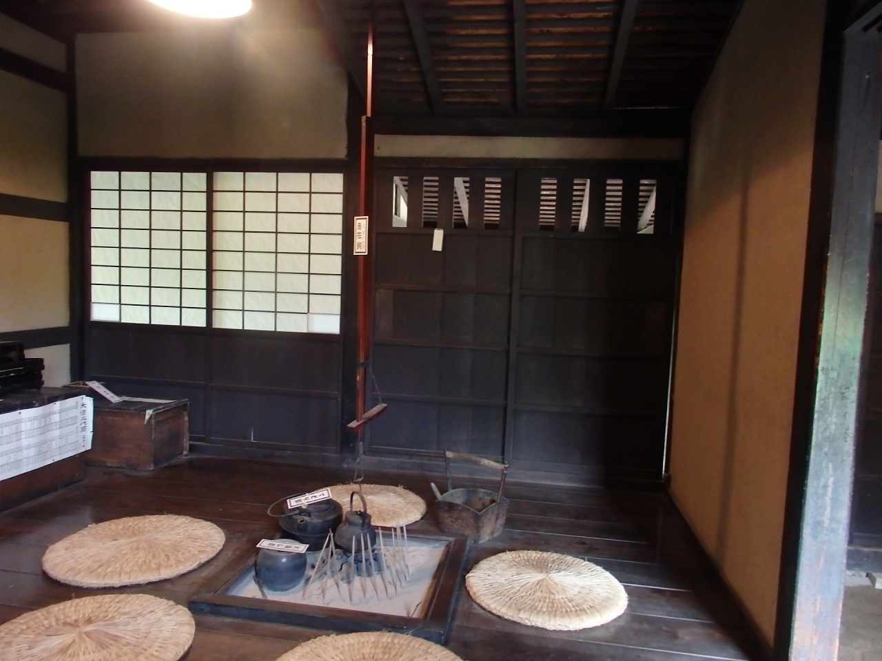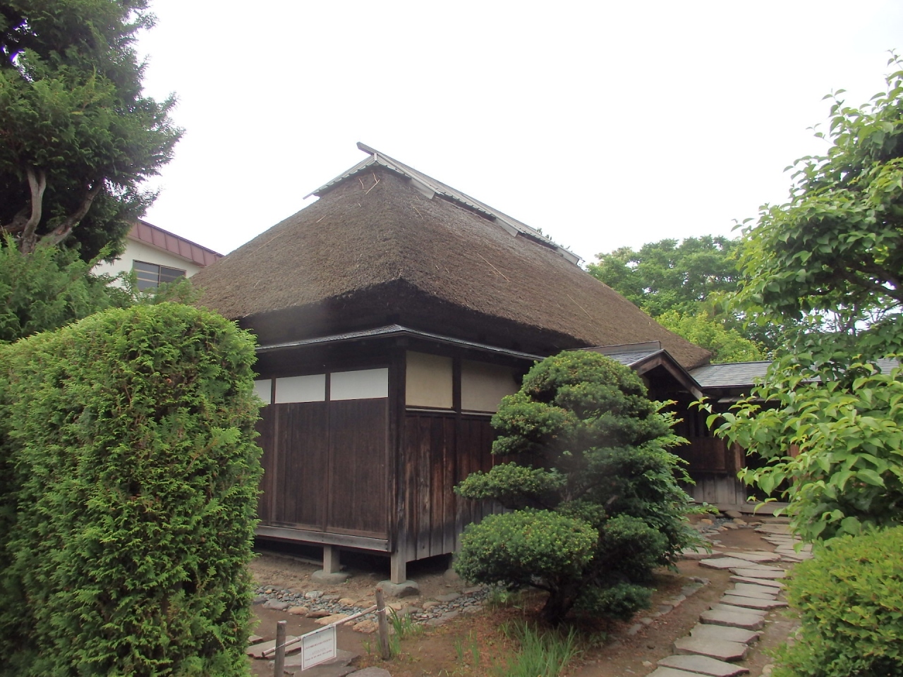 北の堀沿いの道より1本北側の道が伝統的建造物群保存地区で、そこにある中・下級武士・医科の旧住宅を見学する。旧岩田家住宅は十九世紀前半に建てられた武士の住宅です。主要構造、屋根等はほぼ建築当初のままで現在に至り、江戸時代後期の武士の生活を知る貴重な建築遺構です。母屋は寄棟造りの茅葺ですが、付属建物は柾葺です。茅葺屋根の母屋、さらに庭がきれいに整備されているせいか、落ち着いた感じの住まいです