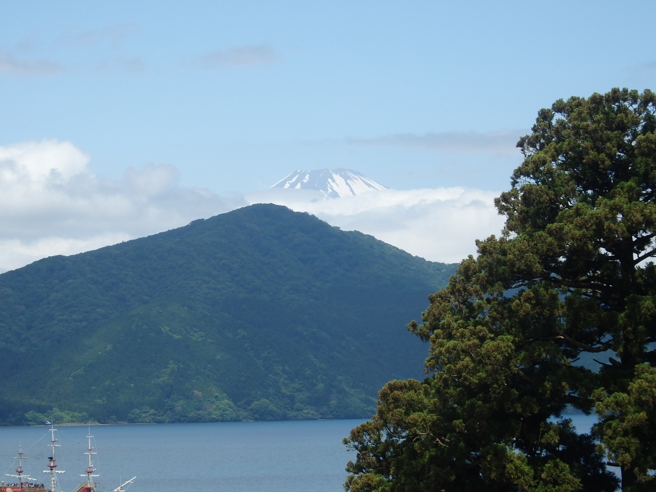 江戸時代初期に現在地に箱根関所は設置された(江戸時代以前にも脇道も含め関所は設置されていた)。西から江戸に向かう場合は検問が無いが、江戸から西に通る場合は証文等の手形が必要であった。「入り鉄砲に出女」と言われているように西に向かう女性には厳しかったようです。厩、大番所、上番休息所、足軽番所、牢屋を見学しまし。各施設には役人、通行人等の人形が置かれています。女性の門番が女性の通行人の髪まで解し、髪の中まで検査している人形は印象的でした。女性には厳しかったことがうかがえます。遠見番所の高台からは芦ノ湖越に富士山を拝むことが出来満足です