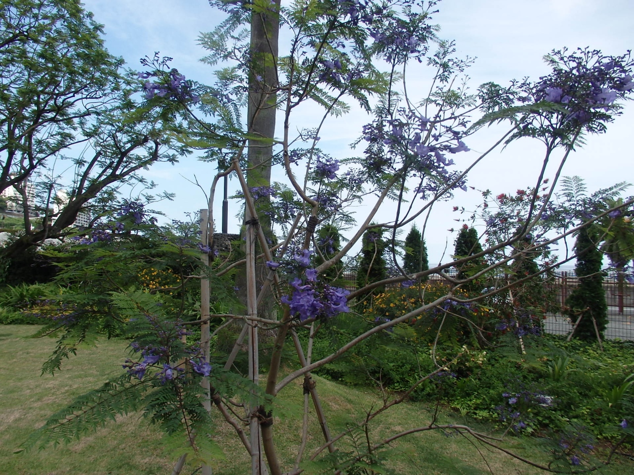 熱海駅から歩いて15分弱の所にジャガランダ遊歩道はあります。尾崎紅葉の代表作「金色夜叉」の中で寛一とお宮の別れの場所の傍です。ジャガランダは南米原産のノウゼンカズラ科の落葉書低~高木で紫、青、桃色の筒状の花を付ける。6月の今、紫色の花が咲いていました。バラやボタンの様な艶やかさはありませんが、私の好きな花になりそうです。ジャガランダ遊歩道の木はまだ幼木のようで、これが高木に育ち満開の花をつけたら見事な光景になると想像されます