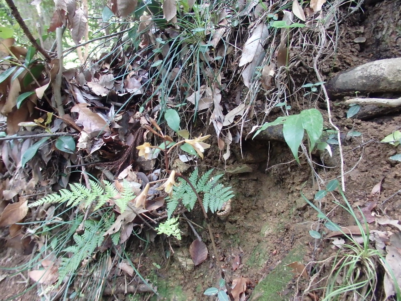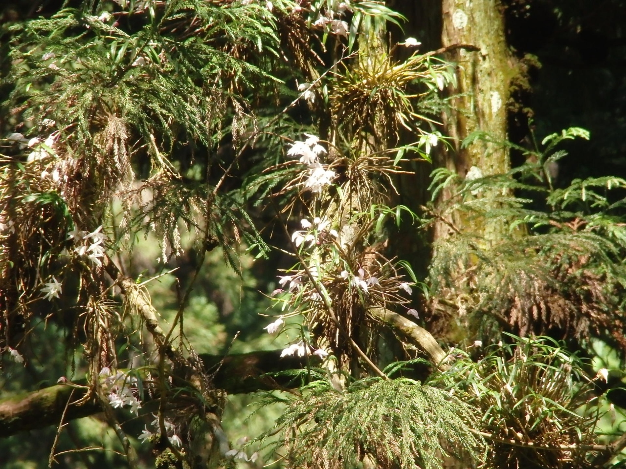 高尾病院の駐車場登山口から急峻な道を登り、二号路、三号路、五号路を経由して高尾山に登りました。途中三号路ではサイハイラン、ムヨウランに初めてお目にかかりました。帰りはセッコクを求めて六号路を下りました。山頂から1時間15分ぐらいのところで見つけることが出来ました。ムヨウランは褐色、セッコクは白色の花でいずれも他の植物に寄生し、滋養分を貰っています。これらの花に会えて感激です。他にも多くの花に出会い、流石花の名山にふさわしい山です