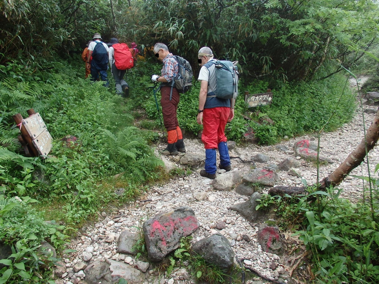 カリンパニ・ニセコ藤山に前泊すし、宿よりレンタカーで五色温泉お花畑駐車場に向かい、50分ほどで到着。登山届を出して登り始めます。霧が濃く遠くが見えないのが気になります。滑りやすい、割と急な岩、木段を登ります。登り始めて1時間、イワオヌプリ分岐に到着。ここで山頂に向かうか、大沼にむかうか相談する。ここまでコースタイムの2倍以上かかっていること、濃霧のため、運転者が車を歩いて取りに行く時間が必要等の理由で山頂行きは断念し、左の大沼方面に向かう。道が濡れていて滑りやすくなっていることもありますが、長い時間を費やすほど老いたと感じました。アキノキリンソウ、マルバシモツケ、アカモノの実、シロバナハナニガナ、イタドリ、ミヤマオトギリ、シラネニンジン等の花実が見られ、その点では満足しました。再挑戦したいものです