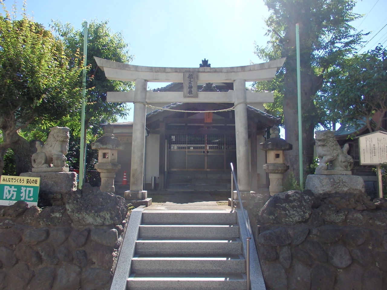 藤沢駅から藤沢宿・遊行寺コースを歩いて2時間半強のところにある小さな神社です。祭神は日本武尊の妃である弟橘姫です。昔はこの辺りまで海で、源実朝が宋に渡る船の木材を切り出したところと言われています。昭和末期に改築されているので、やもえないかもしれませんが、戸がアルミサッシを使用しているのはチョットと思いました。改築費を少なくするためでしょうね。なぜか二宮尊徳像がありました