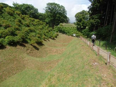 山中城址は小田原に本城を持つ北条氏が西からの防衛のために創築されたものです。山中城の特徴は(1)石垣が使用されていない、(2)虎口の先の馬出し(広場)が四角である(平城である武田信玄の躑躅ケ崎館は丸馬出しである)、(3)畝堀、障子堀といった複数の堀(畝)を設けて障害物として利用している。(3)の障子堀、畝堀は初めて見ました。このように堅固に見える山城も十六世紀末の豊臣秀吉による小田原征伐の際には半日で落城してしまったようです。17倍の兵力の差は如何とも手の打ちようがないのですね 低山歩き 静岡県三島市 箱根旧道西坂+箱根関所跡、ジャガランダ遊歩道 下り標高差300M弱 全工程5時間47分 箱根関所跡バス停~(3分)箱根関所跡(35分)~箱根関所跡バス停⇒(バス5分)芦ノ湖カントリー入口バス停~(12分)箱根旧道入口(28分)~(1時間09分)山中城址(57分)~(5分)山中バス停⇒(バス所要40分)三島駅⇒(JR所要14分)熱海駅~(14分)ジャガランダ遊歩道(12分)~(9分)大江戸温泉物語熱海で立ち寄り湯