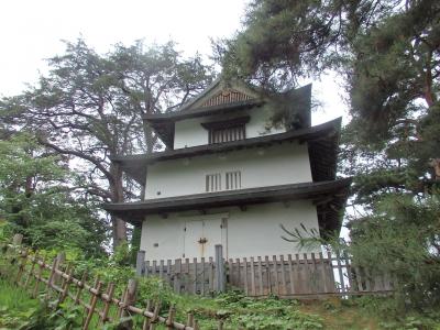 江戸時代、弘前藩津軽氏四万七千石の居城です。 弘前城には国重要文文化財である本丸、丑寅櫓を始め3つの櫓、追手門、亀甲門をはじめとする5つの城門があります。いずれも立派な文化財でお城ファンに必見の建造物です。大藩でない弘前藩がどうして広い場所に、こんな立派な建造物が建てることが出来たのか不思議です。天守閣は現在石垣修理ということで、本丸隅から中央部に仮設置中です。石垣の無い天守閣では風情がありません。石垣修理が完了した後、桜の季節に再度訪問したいものです