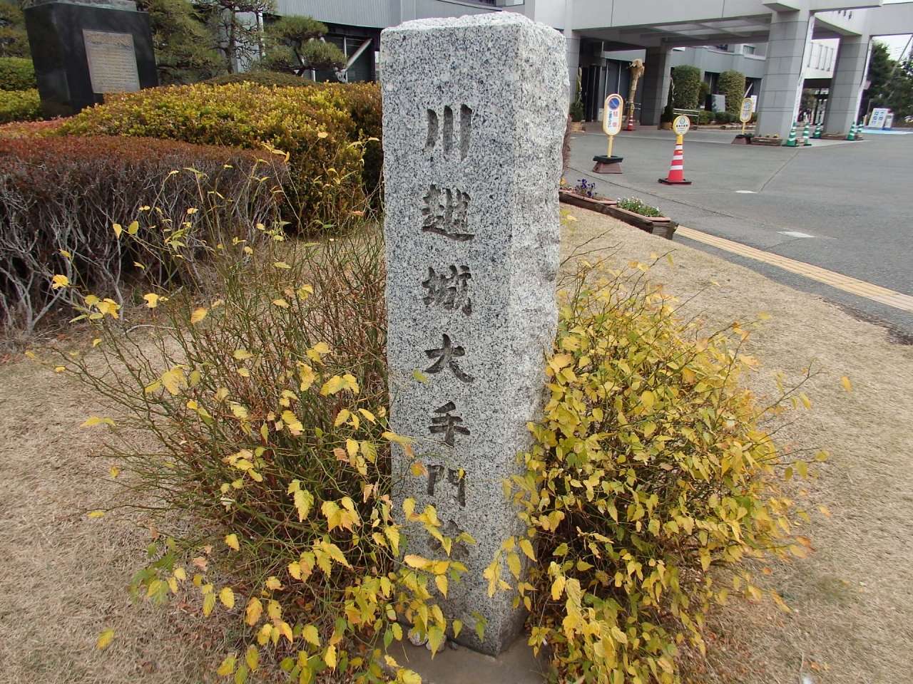 太田道灌像は大手川越城大手門、今の川越市役所の前に建っています。山吹の花の言い伝で有名な太田道灌は扇谷上杉家の家宰で、川越城や江戸城(徳川家前の城)を建てた室
