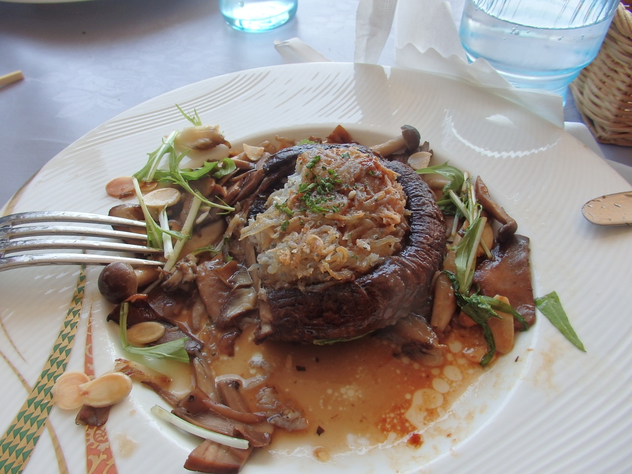 京急浦賀駅から浦賀の渡し、東叶神社を経て、観音崎自然博物館に到着しました。そこにあるレストランマテリアに入り昼食を取りました。三浦半島でとれた野菜の前菜とシラスステーキというのをいただきました。シラスステーキは大きなきのこ中にシラス詰めてステーキ状に焼かれているものです。お値段は若干高めでしたが、さっぱりしていておいしく頂きました。若い人には、さっぱりし過ぎて多分物足らないと思います