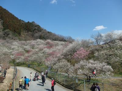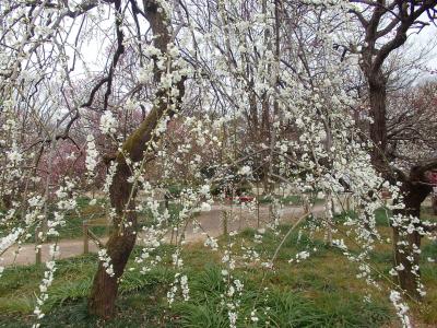 1100本を超える白梅、紅梅、枝垂れ梅が咲いていました。白加賀、紅千鳥、鹿児島紅、月影枝垂れ、とや出錦、藤牡丹枝垂れ、雛曇、思いのまま等多くの種類の梅を見ることが出来ました。多くの木が満開を迎え満足できる観梅でした。本数は羽根木公園より多いですが、種類は少ないように思えました。ウイークデーのせいか、見物客も少なくゆっくり散策が出来ました