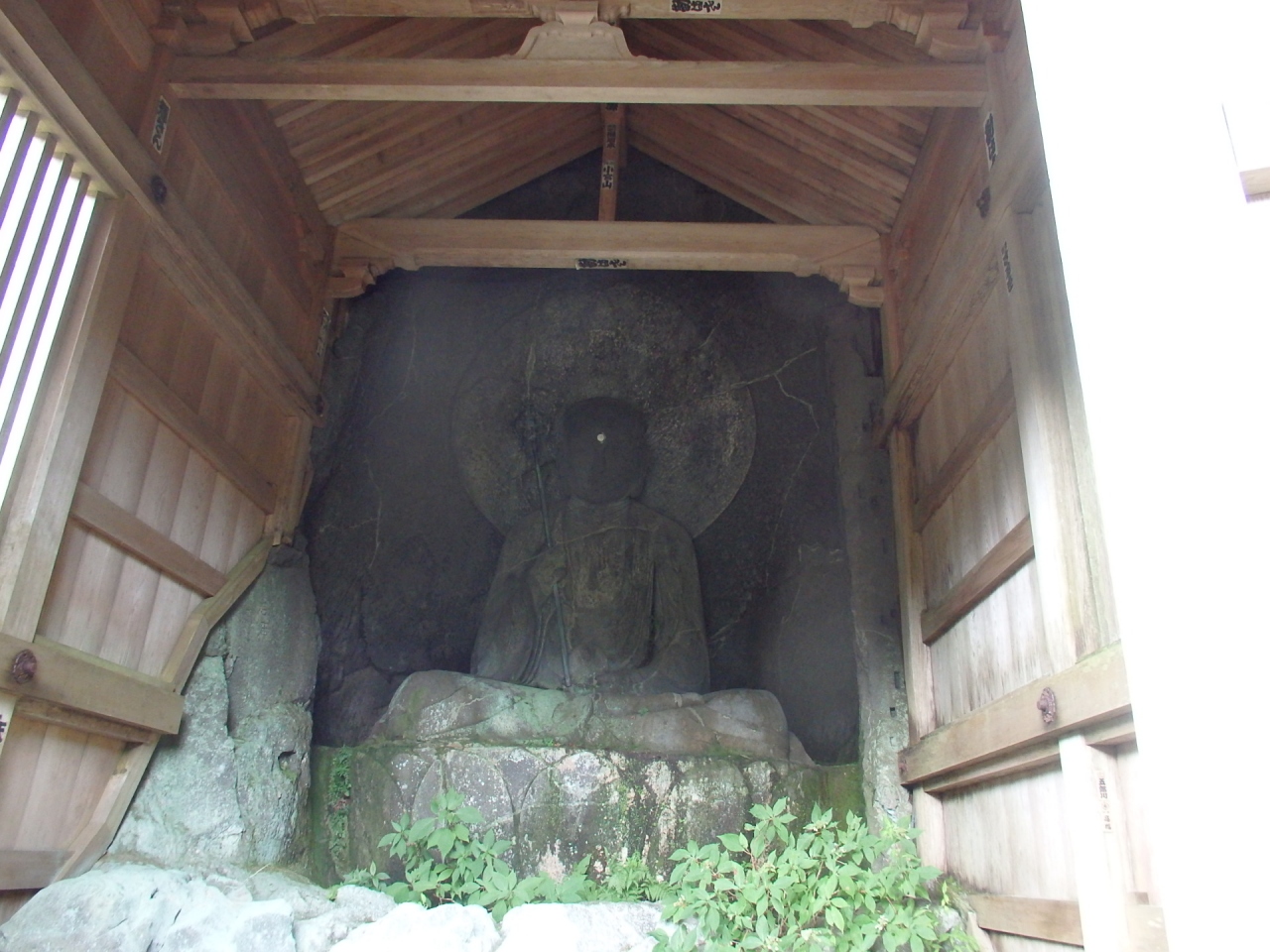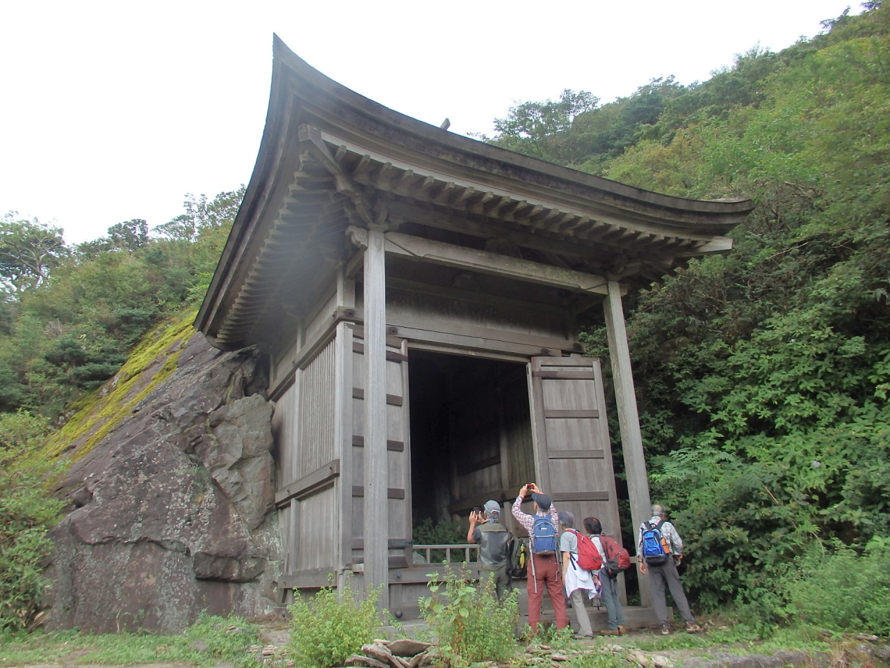 恩賜箱根公園、箱根旧街道杉並木、箱根神社、権現坂を経由して箱根鎌倉古道に入り、六道地蔵(摩崖仏)に行きました。六道地蔵は俗称、正式には元箱根摩崖仏といい、岩盤に彫られた地蔵菩薩で像高さ3.5M、国重要文化財で、完成は1300年です。この辺では一番大きい地蔵菩薩です。岩盤が風化、劣化しており、覆屋(地蔵堂)を含めて岩盤の修理・補強が実施されています。自然の中にある歴史的モニュメントを保持すのは大変なことですね。右手に錫杖(修理時に追加された)、左手には宝珠を持つ仏様は神々しく、身が引き締まる感があります