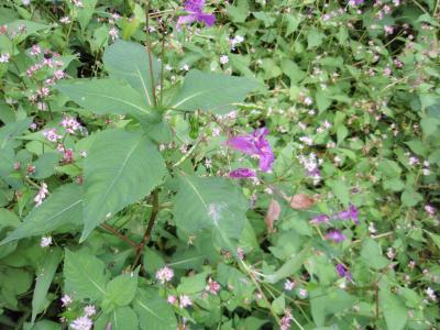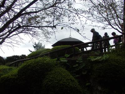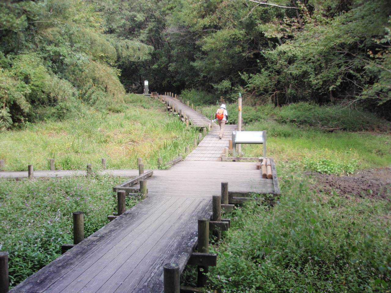 飯盛山山頂から下って約50分室池園地に入りました。園地は宿泊・研修施設、スポーツ施設、トレイルコース、湿性花園、アスレチック、陶芸教室、芝生広場等子供はもちろんのこと、大人も楽しめる施設があります。今回は湿性花園の木道を通り、瓢箪橋から出て飯盛霊園に向かいました。湿性花園では今はツリフネソウとママコノシリヌグイ等しか見られませんでしたが、標識を見ると、カキツバタや都会では見られないサギソウ、トキソウ、モウセンゴケ、サワギキョウ、ヌマトラノオ等が見られるとあります。初夏のシーズンには是非来たいものです