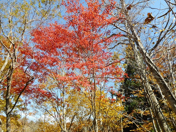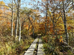 玉原高原は6月の湿原植物、新緑と紅葉のブナ林、初夏のラベンダー園、秋の紅葉、冬のスキー、四季を問わない鹿俣山、尼ケ禿山登山等が1年中、このどれかが楽しめるリゾート施設です。今回は湿原センターを出発し、紅葉を求め尼ケ禿山に登った後、湿原に行きました。この時期花はありませんが、木道を歩く中、尼ケ禿山ほどではないですが紅葉が見られ、また湿原の草紅葉を見ることが出来ました。山に登る体力がない人でも、湿原だけではなく、散策コースを歩くことによって十分紅葉を楽しむことが出来ます