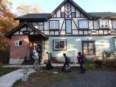 迦葉山に登った翌日、尼ケ禿山登山のためにペンションアップル館に泊まりました。玉原高原ペンション村にあるペンションの一つです。スキー場の傍にあり、鹿俣山、尼ケ禿山登山や玉原高原散策に便利なお宿です。オーナーは代替わりされ若夫婦で切り盛りされています。食堂では薪を使った暖炉が炊かれています。夕食はフレンチで、薄味で我々年寄り向きの料理が出され美味しく頂きました。雰囲気の良いお宿です。風呂の無い部屋があり、共用風呂が狭い(一度に3人ぐらいしか入れない)のが少し難点です
