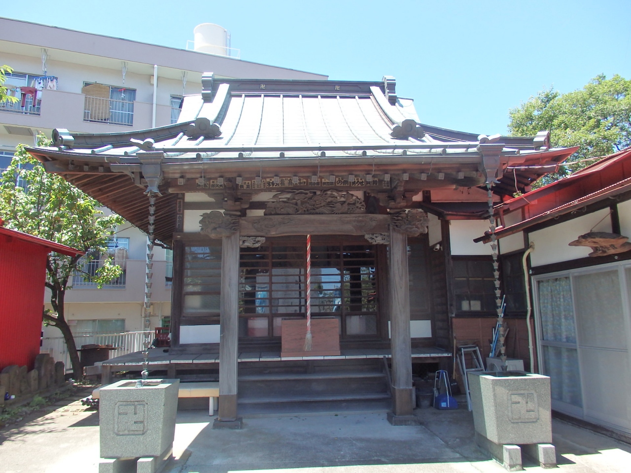 藤沢駅から藤沢宿・遊行寺コースを歩いて30分強のところにあります。左に鼻黒稲荷大明神、右に金砂山観世音の2社が並んで建っています。金砂山観音堂は江戸時代初期、金井清西が開基した堂宇で、本尊は子育安産帯解観世音菩薩。子育て・安産にご利益がある観音様です。ここは昔、砂山だったらしいので砂の寺が入った名前なのですね。軒下の龍や獅子の木彫が、やしろ外観から想像できないほど見事です。