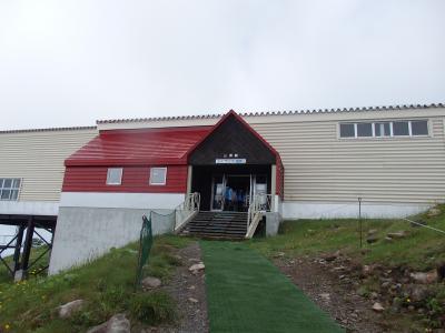 五色温泉お花畑駐車場からイワオヌプリ分岐、大沼湖岸、大谷地湿原を経由して4時間40分、神仙沼自然休養林休憩所(レストハウス)に到着しました。休憩所は修理中でしたが、中は使用できました。ここには軽食堂、喫茶室、休憩室、トイレ、土産物店、広い駐車場等があります。休憩を我慢して先に神仙沼に行き、花を堪能した後、ここに戻りブルーベリーのソフトクリームを食べました。大変美味しく頂きました。下山の休憩所として使用できるので、大変便利です