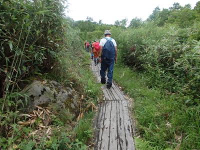 した。湿原の中の木道を歩きました。フサスギナの群生地とありますが、土筆の葉と同じようなものは見られませんでした。湿原の乾燥化が進んでおり、チシマザサが繁茂している状態でした。残念ながら野花も見ることは出来ませんでした。興味の湧かない湿原でした