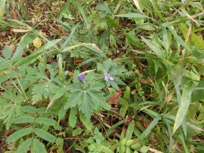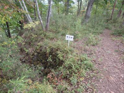 登山開始直後いきなり少し急な山道、石段を登りますが、緩やかな登りの山道が続く。竪堀跡、土塁跡、曲輪、門跡、石垣等の山城に遺構跡を見ながら高度を上げてゆき、登り始めて36分要害山山頂(780M)に到着しました。割と広い平らな主郭があったところです。展望はありません。10分ほど散策した後、来た道を戻り下山、16分で登山口に着きました。本日のコース、標高差250M、歩行時間も往復1時間2分、勾配もきつくなく、登山道も整備されていて歩き易いコースでした。トリカブトの花を今年初めてみました。紅葉は少し始まったようです。また道中多くの山城遺構跡が見られ、山城ファンにとっては見逃せない山の一つです