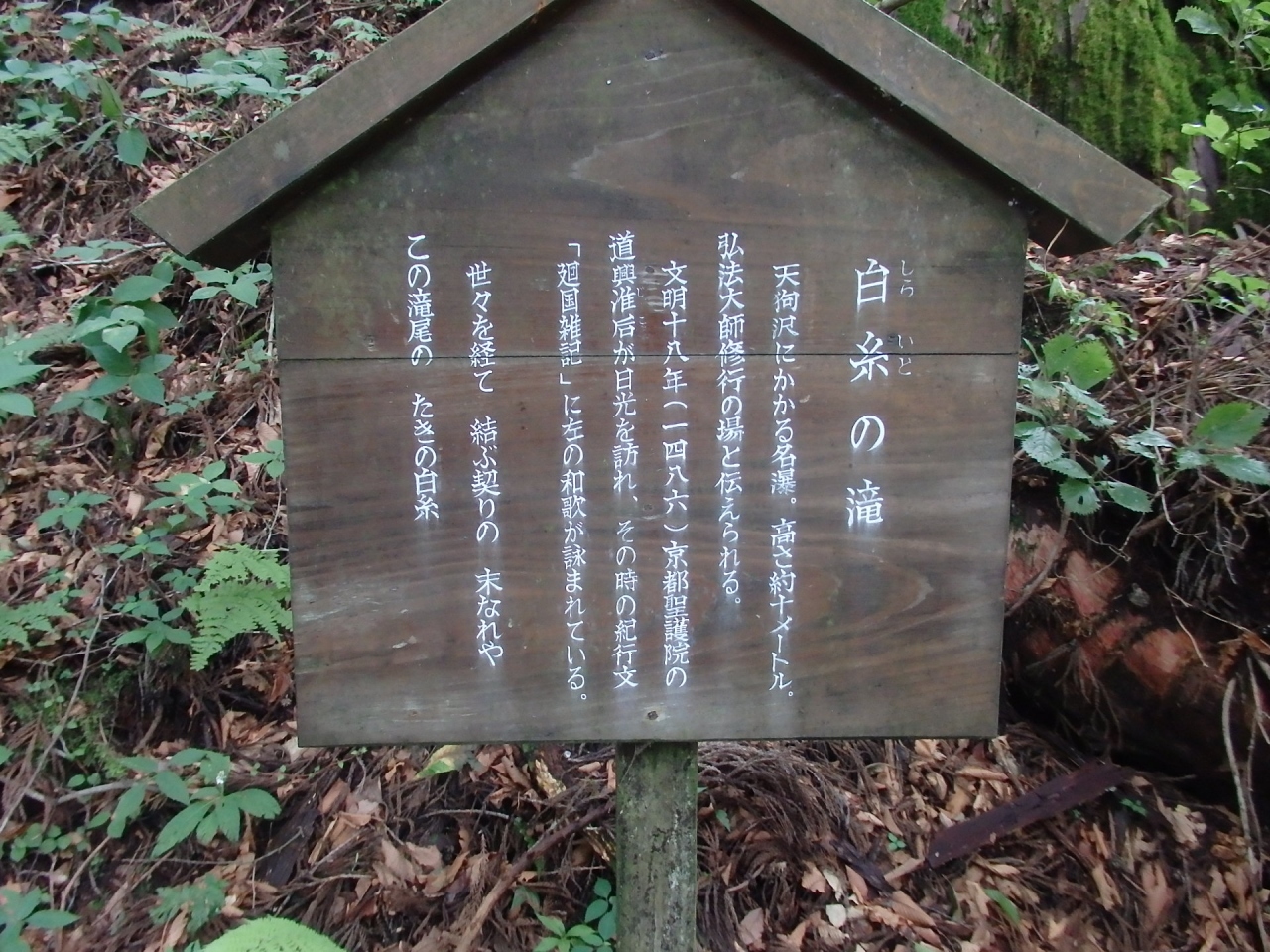 「アクセス」鎌倉駅下車、大塔宮行きバスで岐れ道バス停下車徒歩2時間、またはバス停十二所から徒歩10分