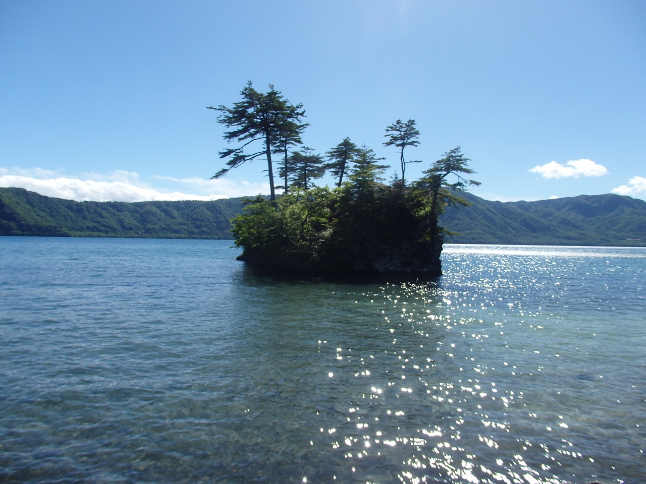 十和田湖は八甲田山の噴火で形成されたカルデラ湖です。唯一の流出河川奥入瀬川が太平洋に流れ出ており、奥入瀬渓流として散策コースになっています。遠くに見える山々を背景にした青空の下の十和田湖は絶景です。また十和田湖バス停そばには砂浜の御前ケ浜、乙女の像、十和田神社、十和田ビジターセンター等多くの見物するところがあり、散策すれば十分満足できるスポットです