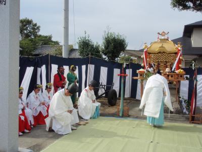 われる。神事は湧き水で祭具を洗う、神社から神輿を頭屋への迎え(今年は無し)、翌朝、神