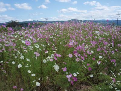 JR奈良線棚倉駅から,三上山山頂(473.3M)を経由して3時間30分、恭仁京・山城国分寺跡に着きました。恭仁京は奈良時代、聖武天皇が世情不安を打開するために、平城京から遷都しましたが、5年後には廃都となりました。その後は山城国分寺に再利用されました。現在は一部礎石が残っているのみで、説明版と石碑があるのみです。説明版と石碑が無いと、とても昔、都や国分寺あったとは想像できない場所でした。跡の所々にコスモスが植えてあり、満開で綺麗でした