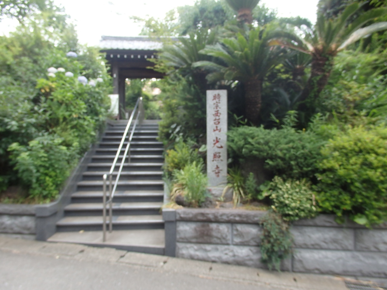 明月院を出て北へ13分光照寺に到着。石段を登り三門をくぐり、正面に本堂(修理中)。隠れキリシタンを受け入れたと伝承。シャクナゲ寺と呼ばれているが完全に終了。境内の花巡りの順路を歩くがツツジが少し残るのみ。カシワバアジサイ、アジサイが見られたので満足できました。観光客は皆南の建長寺や明月院等有名寺院に行くので北にある光照寺の参拝者零。静かに観光するのであればこちらを推薦する。本堂はこじんまりとして小さい。5月のシャクナゲの花のころに再訪したい