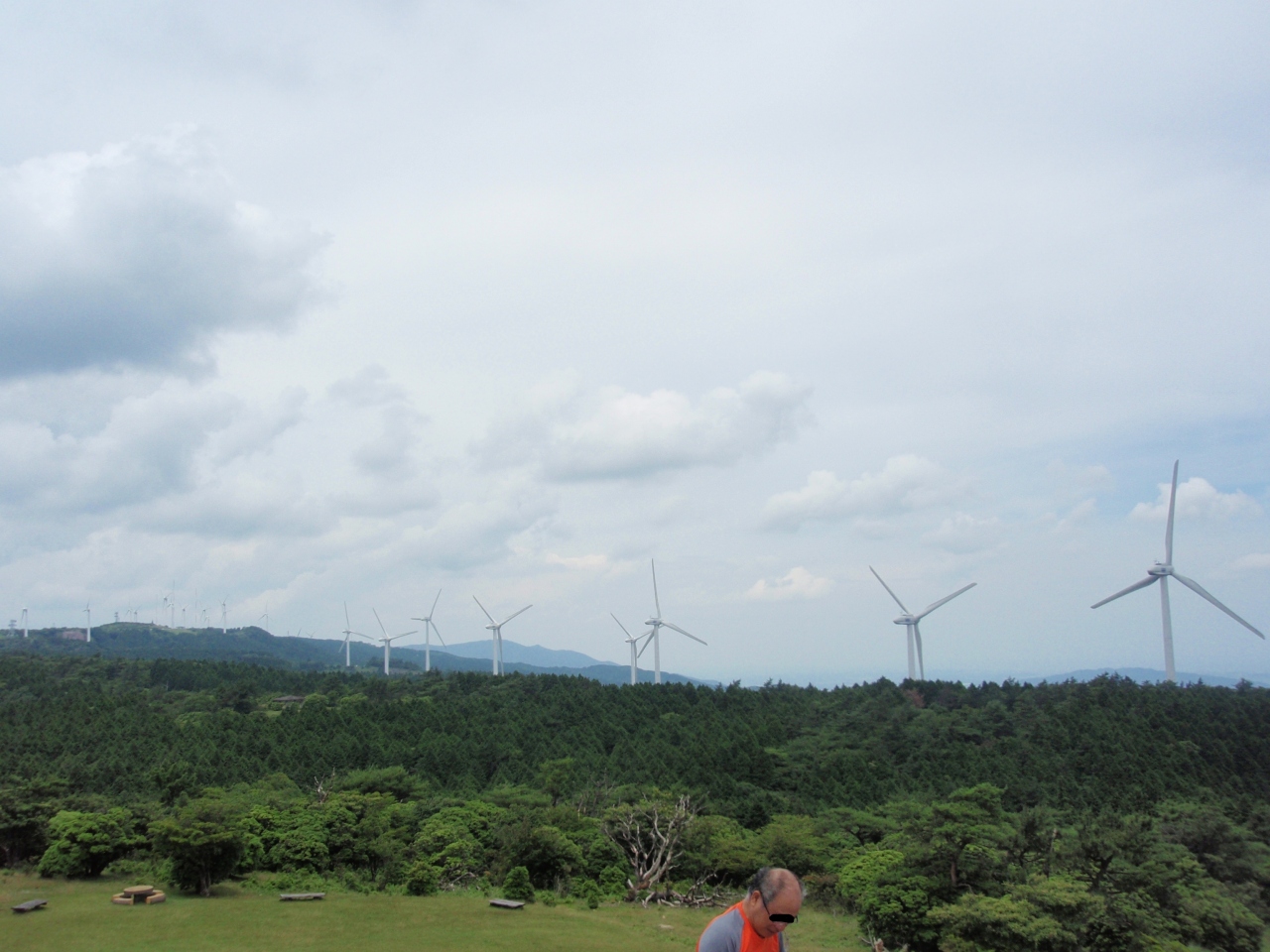 近鉄西青山駅を出発し、七百数十段の石、プラ段を凌いで1時間51分髻山三角点に到着。360度のパノラマを堪能して30分先にある丸山草原に到着。数十基の風車が回っている。下山は四季の里経由で東青山駅に降りました。本日のコース、標高差は400M強であり、アップダウン数も多く、また数百段の石段、プラ段登りとタフなコースであった