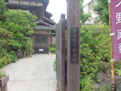 個人病院の庭園と自宅が八王子市に寄贈され、八王子市が整備して開園。900坪弱の敷地に日本家屋、枯山水の庭、池泉回遊式庭園、露地等が配され四季折々の花が見られるようになっている。池泉回遊式庭園は心地池を中心に鶴島、亀島、滝石組、石橋を回遊しながら鑑賞できる。枯山水は禅宗寺院に見られる庭で白砂、大小の石、植物を組み合わせたものです。露地は茶室に付随する庭園です。ここ露地には水琴窟も設置され音も楽しめる庭になっています。庭からの眺望も近隣の山山が見えすばらしい景色です。また日本家屋や枯山水の庭等が龍安寺、建仁寺、四ツ目、ななこ、御簾等多種の竹垣で囲まれおり、この多種の竹垣を見るのも楽しいものです。 裏高尾散策する際にはここに寄ることをお勧めします