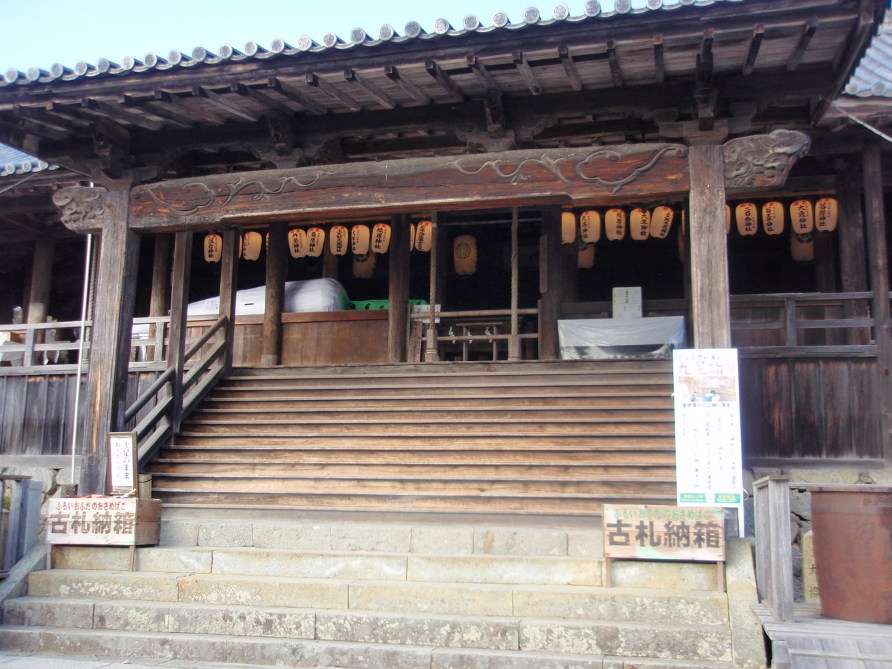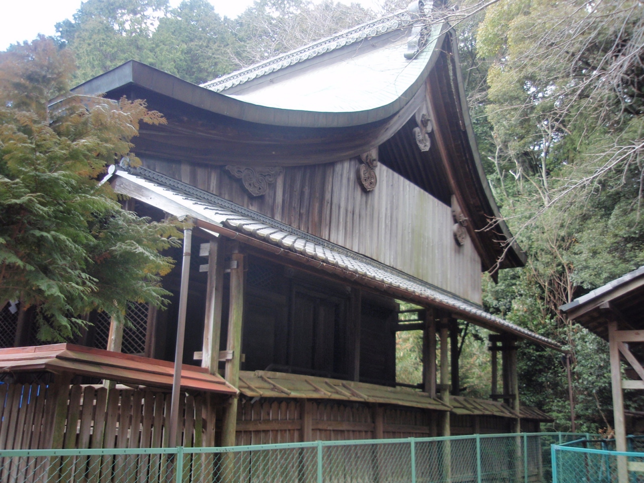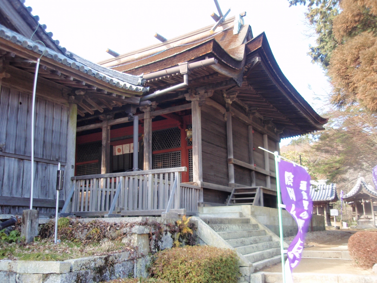 年の再建ですが、屋根の形状が見事で、眼を見張りました。正面は千鳥破風、向拝(階段