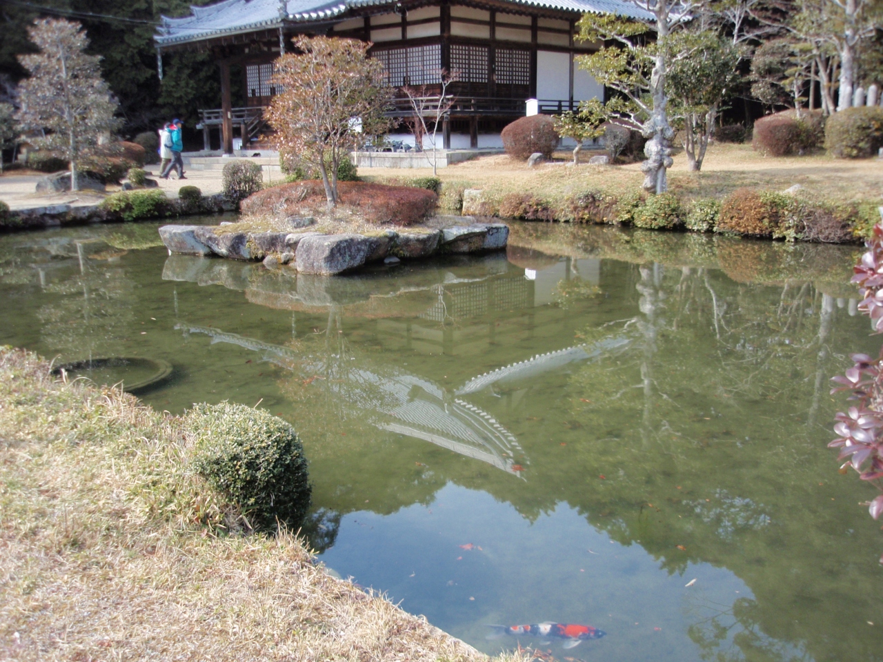 山門の無い、再建された本堂、鐘楼、庭園のこじんまりした伽藍になっています。本寺のハイライトは本堂内に国宝木芯乾漆十一面観世音菩薩です。本寺の仏様は乾漆像です(木芯に布や紙を漆で張重ねたり、木屑と漆を練り合わせたものを盛り上げて作る彫像法)。始めて見る彫像方法の仏様かなと思いましたが、帰宅してから調べたら東大寺や招提寺で見たことあるのが分りました。仏様は男性ですが、女性らしさを感じさせる柔和で神々しいお顔に見とれてしまいます。見る場所を変えると表情が変わって見えます。参道には桜が植えられていたので季節に合わせて参拝すると楽しみが倍加します