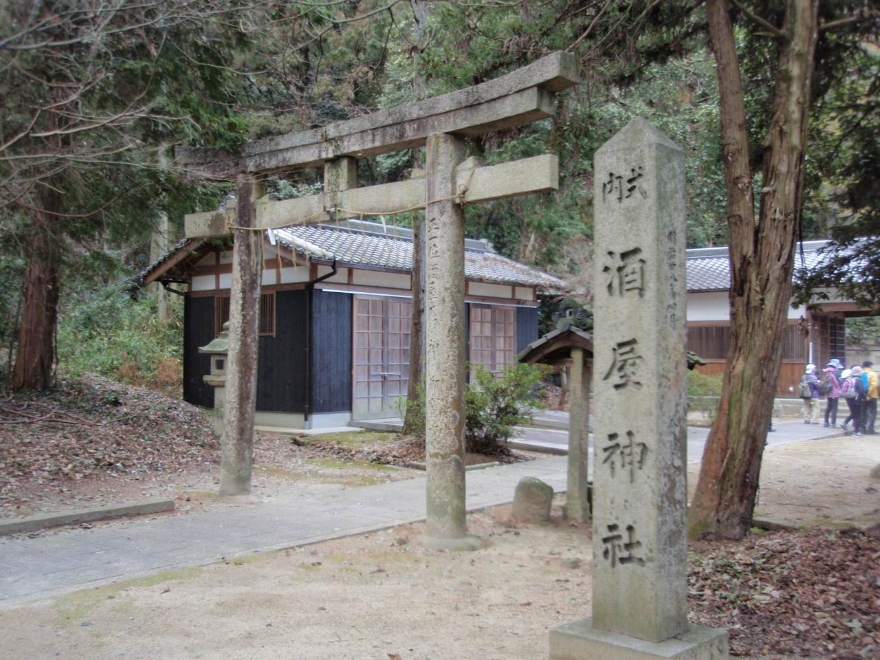 天王山登山途中で酒解神社に寄りました。神社は阪急京都線大山崎駅から少し急な登りを凌いで、50分(山頂まで10分)のところにあります。門を入ると左に国重文神輿庫、本殿、右に拝殿があります。鳥居は旗立松のところにあります。奈良時代創建という古い神社です。無人のせいか、ハイカー以外人を見かけないので寂しい神社です。例祭を行うにも、氏子さんはここまで登ってくる必要があるので、年配者にとっては大変でしょうね