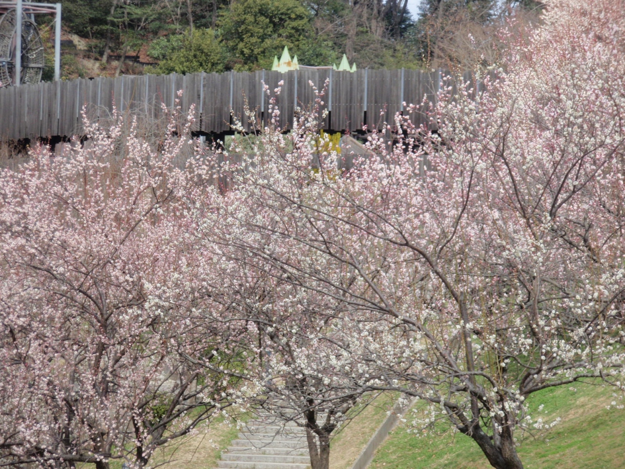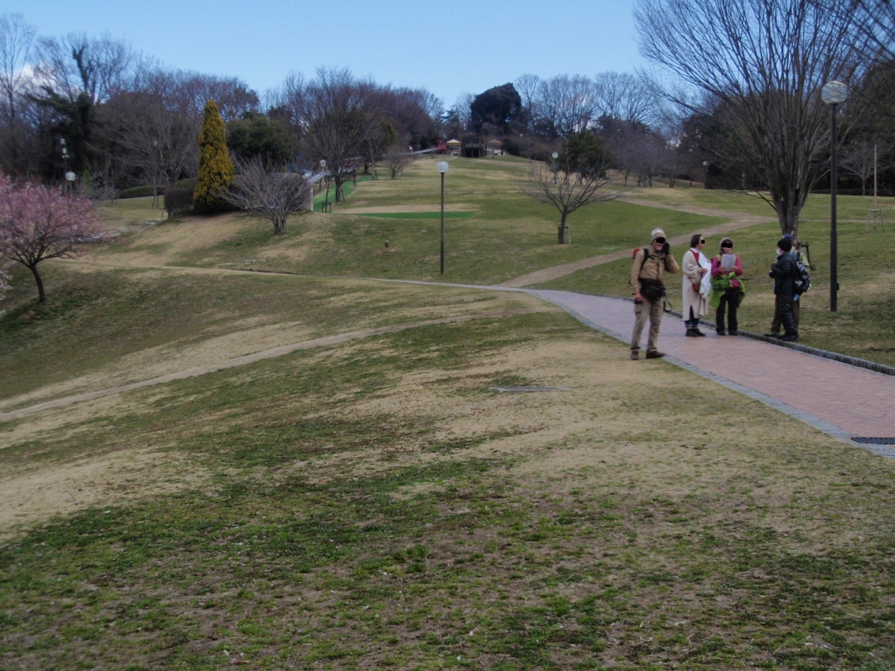 城陽駅より山背古道を歩く途中で水度神社、鴻巣山寄った後鴻巣山運動公園に寄りました。山背古道は北の城陽市から南の木津川市までの25KMの道をいいます。駅から50分ほどで鴻巣山運動公園に着きました。城陽市の広大なレクリエーション・スポーツ施設です。長いローラー滑り台、ネットクライミング、ネットトンネル、滑り台等の遊具、大芝生広場があり、小さな子供たちを遊ばせるのにちょうど良い遊び場です。未だ寒いせいか人は少なかったです。数本ある梅が満開、楽しませてくれました