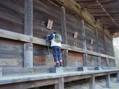 天王山下山途中で柳谷観音(楊谷寺)に寄りました。寺は天王山山頂から1時間10分ほど下ったところにあり、眼病平癒の祈願所として有名です。石段を登り四脚門をくぐり正面に本堂、左手に鐘楼があります。本堂の左手を入ってゆくと独鈷水があります。眼病をはじめ諸病治癒に霊験のある霊水として有名で、参拝者は飲んだり、入れ物に入れ持ち帰りしています。私も飲んでみました。冷たくも無く普通の水です。有名なお寺にもかかわらず、ハイカー以外の人は見かけられませんでした。家族のためにお守りを買いました。紅葉の季節に再訪したいものです