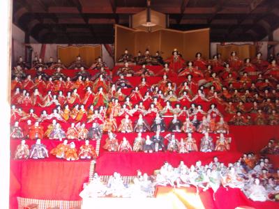 名だたる武将達の居城であった見事な大和郡山城等を巡るハイクで郡山八幡神社に寄りました。神社は聖武天皇の勅願として、守護神を勧請したのが始まりです。祭神は応神天皇、比売命等。境内に多くの摂社があります。ご利益は家内安全、学業成就等です。多くのお雛様がところ狭しと並んでおり、圧巻でした。境内にある枝垂れ梅が満開で見事でした。また本殿の屋根の勾配が他で見るより急な感じがして今まであまり見たことがありませんでした。土曜日とひな祭りが重なり、参拝者が多く混んでいました