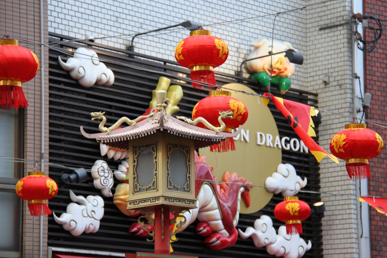 南京町の中央通りは十字路になっていて中央の広場には「あずまや」、東は「長安門」、西は「西安門」、南は「南楼門」という名前の門があり、北は元町商店街につながる。