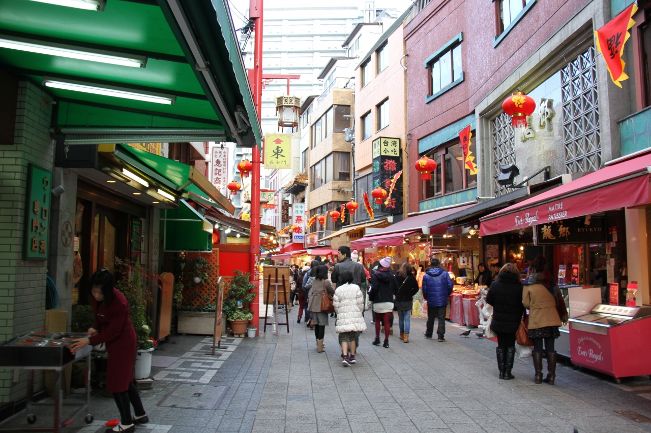 南京町東西約200m、南北110mの範囲に100あまりの店舗が軒を連ね、店頭の路上で点心・スイーツ・食材・記念品などを売る店も多い。