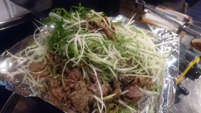 練炭で焼いた豚肉プルコギの上に、千切りねぎをたっぷりのせた「ねぎプルコ...