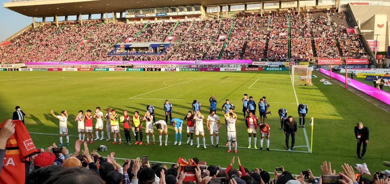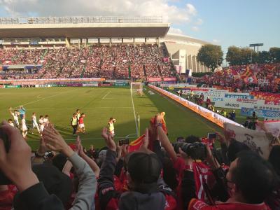 入口も多くて、2階で外周を一周出来るので便利です。一階にお店もあって、新しいスタジアムは便利に作られていますね。