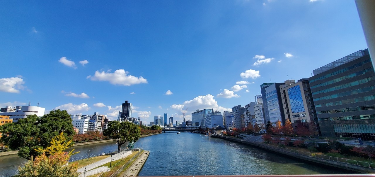 ダックツアーで天神橋を通過しながら、天満橋方面を望みました。