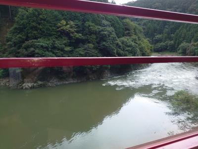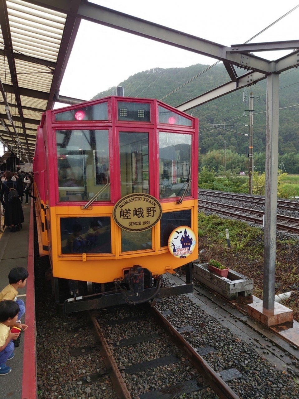 嵐山から、亀岡に向かうトロッコ列車に乗りました。最初、左手に川、途中から右となります。