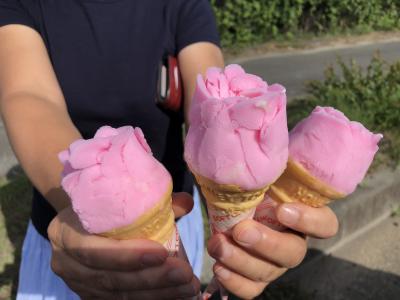 バラの花ビラのようにコーンに盛り付けてくれます。
