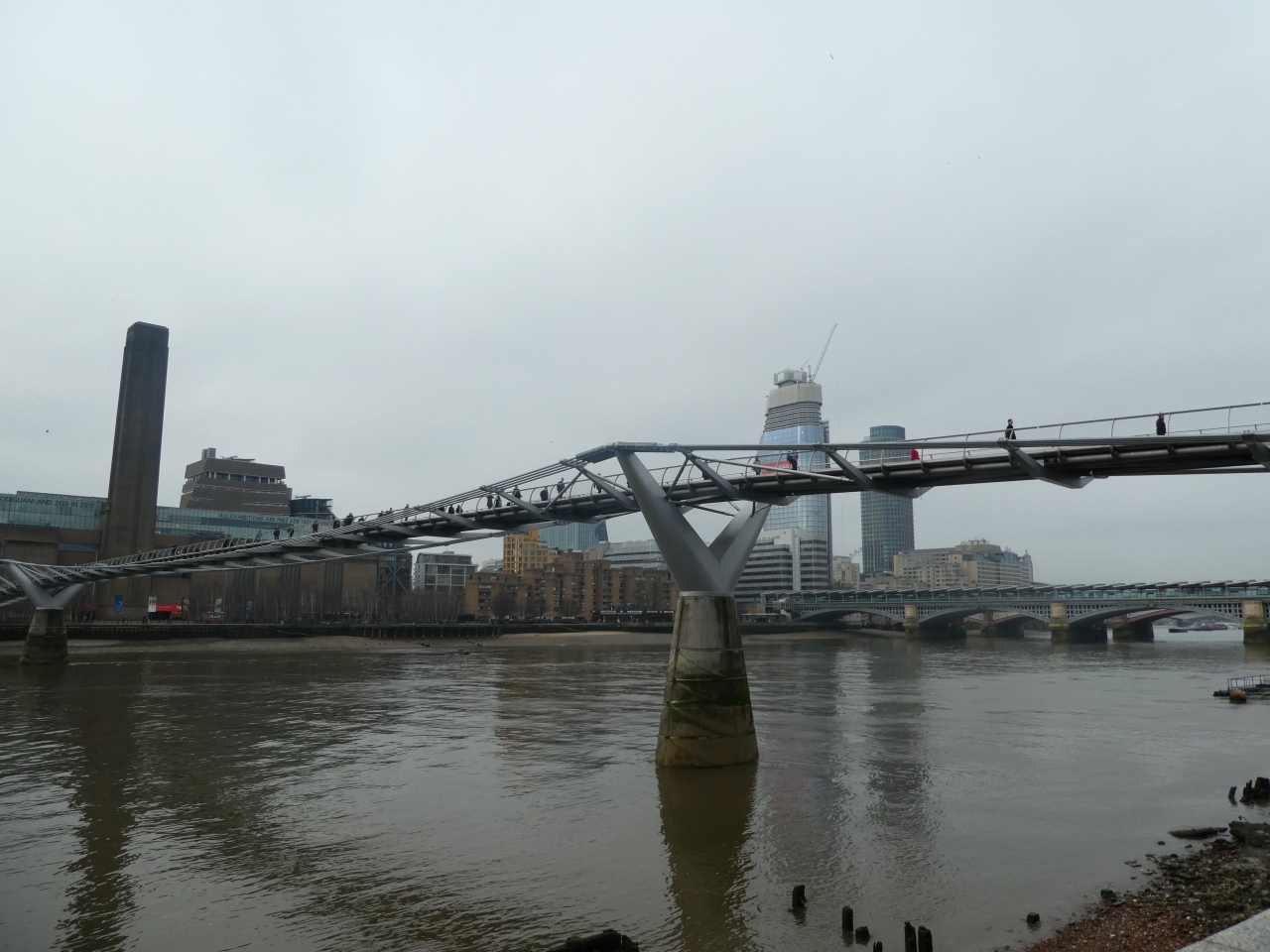 遊歩道上から見上げると、曲線の奇麗な橋が