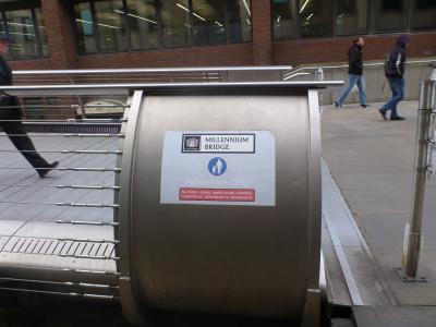 橋の脇にゴミ箱がありますが、ロンドン市の紋章は