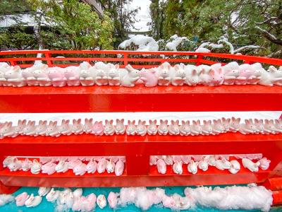 境内の中央にうさぎみくじがたくさん置かれていました。たくさんの方が撮影...
