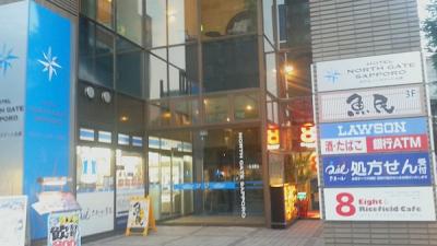 JR札幌駅の西側。直結ではないですが屋根付きアーケードの突き当りの信号向い。ほぼ外に出ないので冬でもラクチンかも。このアーケード内にコンビニ、100均、ファーストフード、居酒屋、など入っているので飲食も不自由しません。