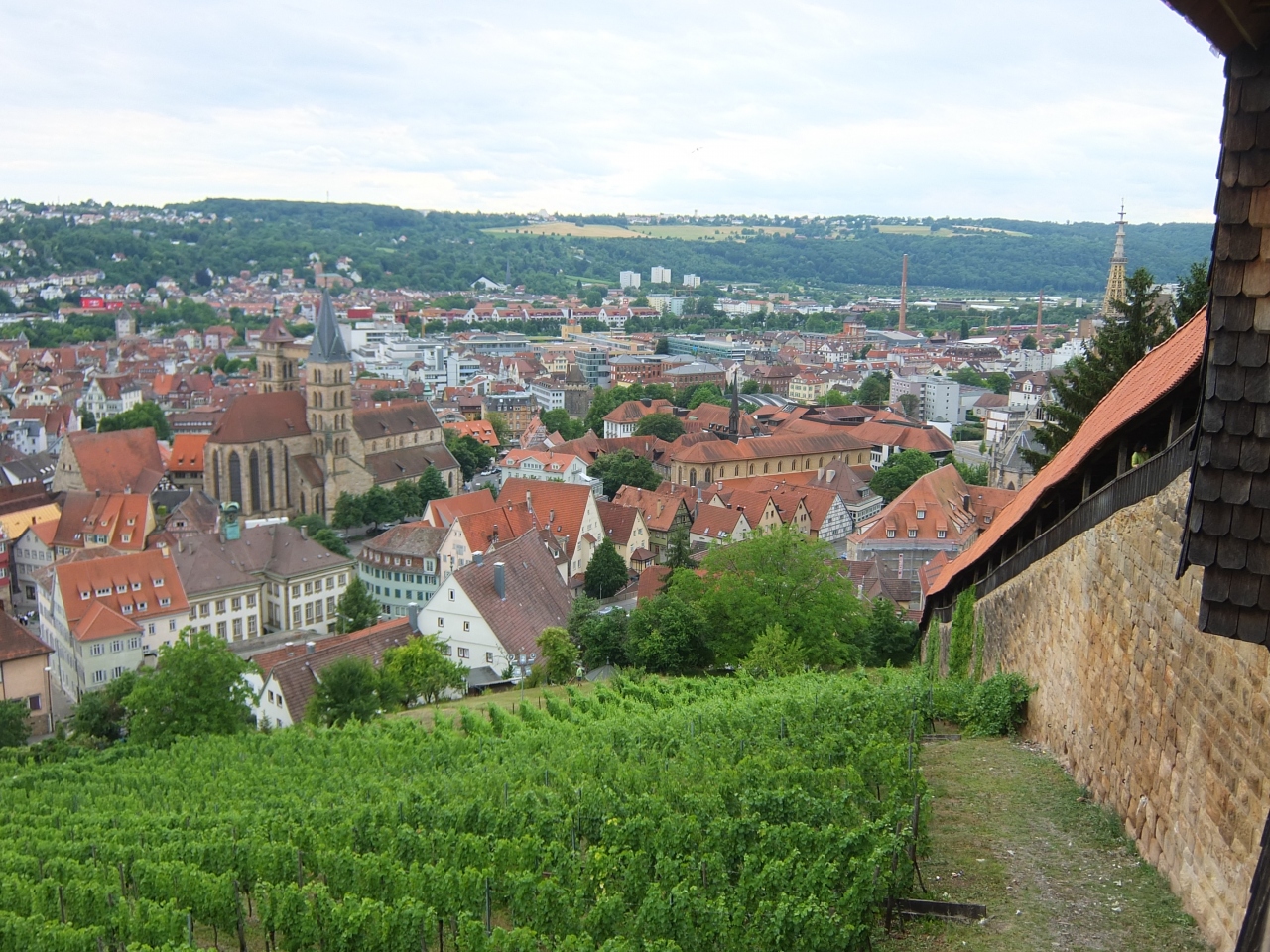 エスリンゲン城へ行く回廊(長い階段)を登って行くと、エスリンゲンの街とブドウ畑を見渡すことができます。