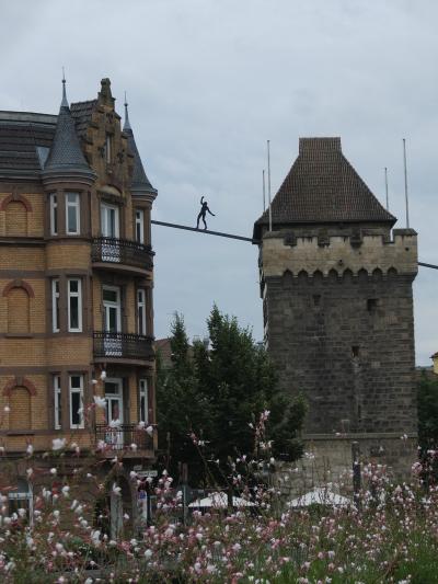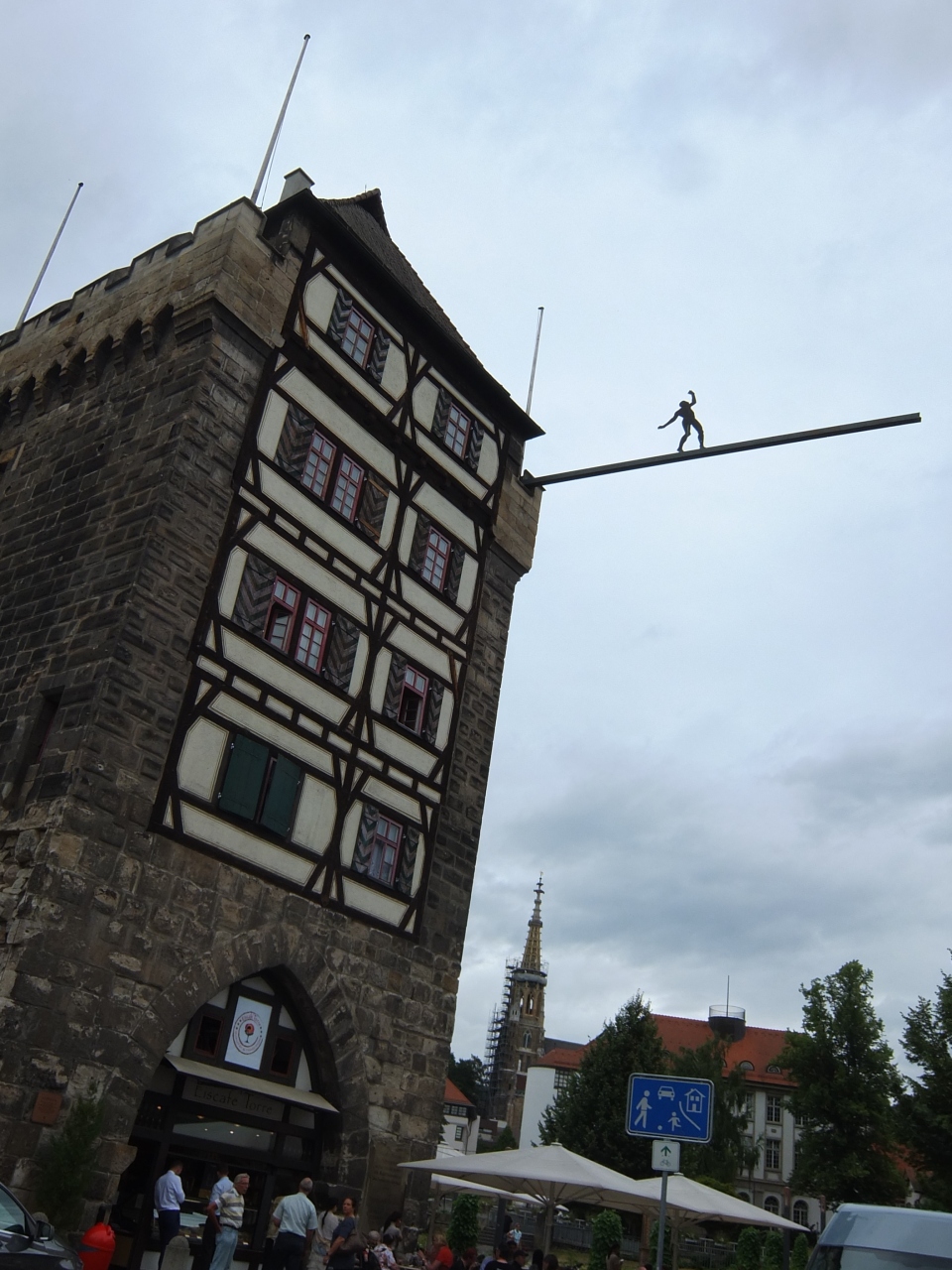 綱渡りの名人の棟が旧市街への目印。マルクト広場の観光案内所には、日本語のガイドブックや地図などが売っています。