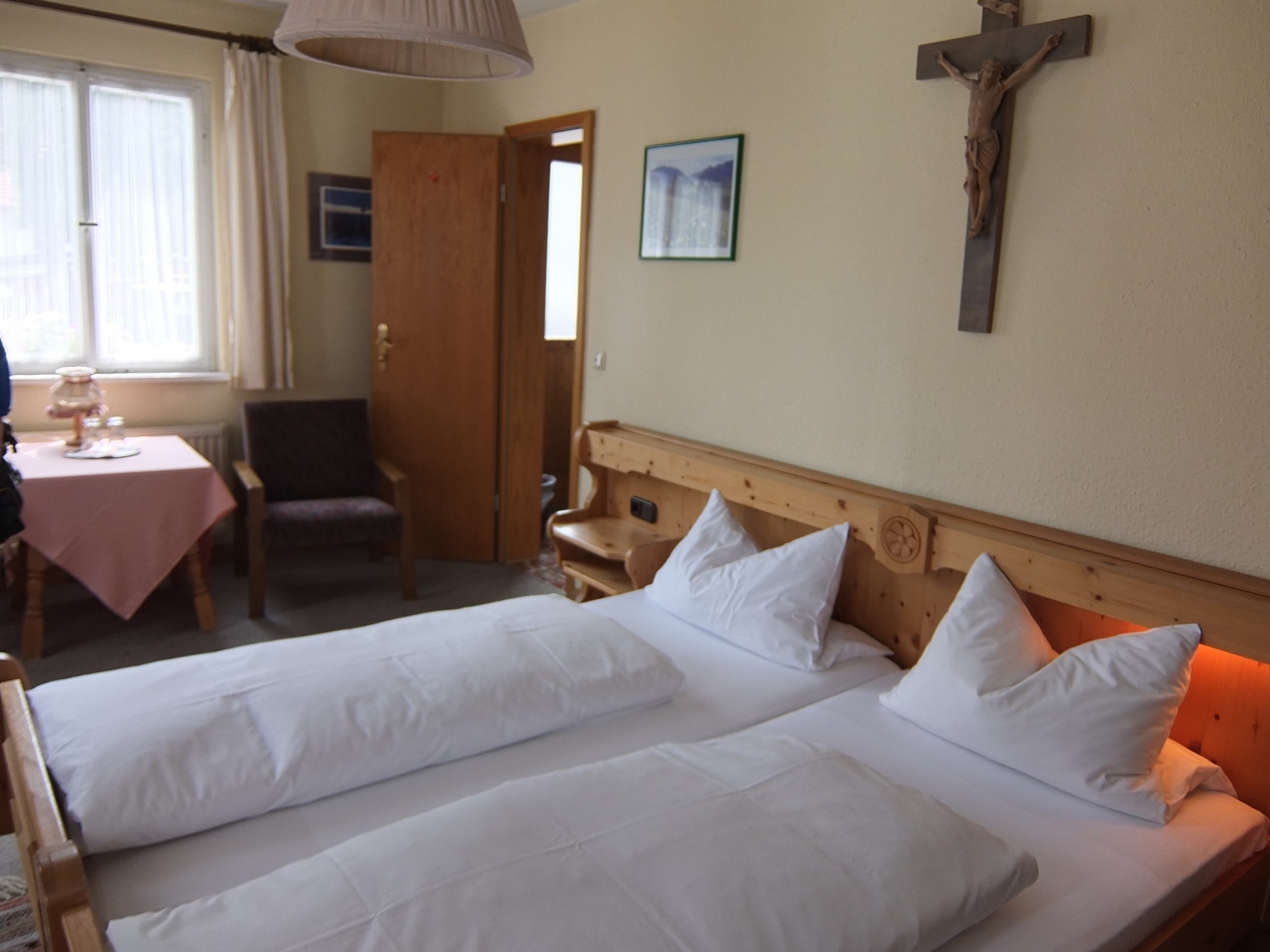 ホテルの外観は、お花で飾られており、キリストの受難劇で知られる町なのでキリスト色が少し強い感じを受けましたが、内装もかわいらしいです。