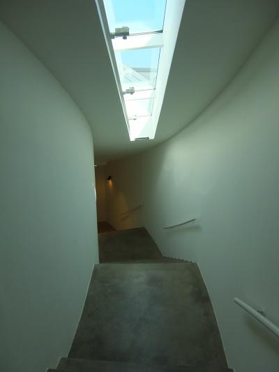 白いすっきりとした印象の建物で、印象的な吹き抜けを囲むように展示空間が広がっています。
