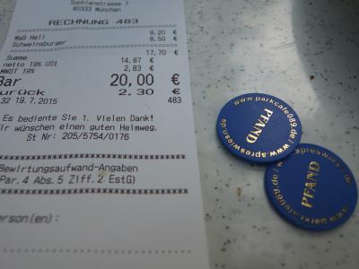 料金を払う時にデポジットコインをもらい、食器を片づけるとお金(2ユーロ)が帰ってきました。- 旅行時期
